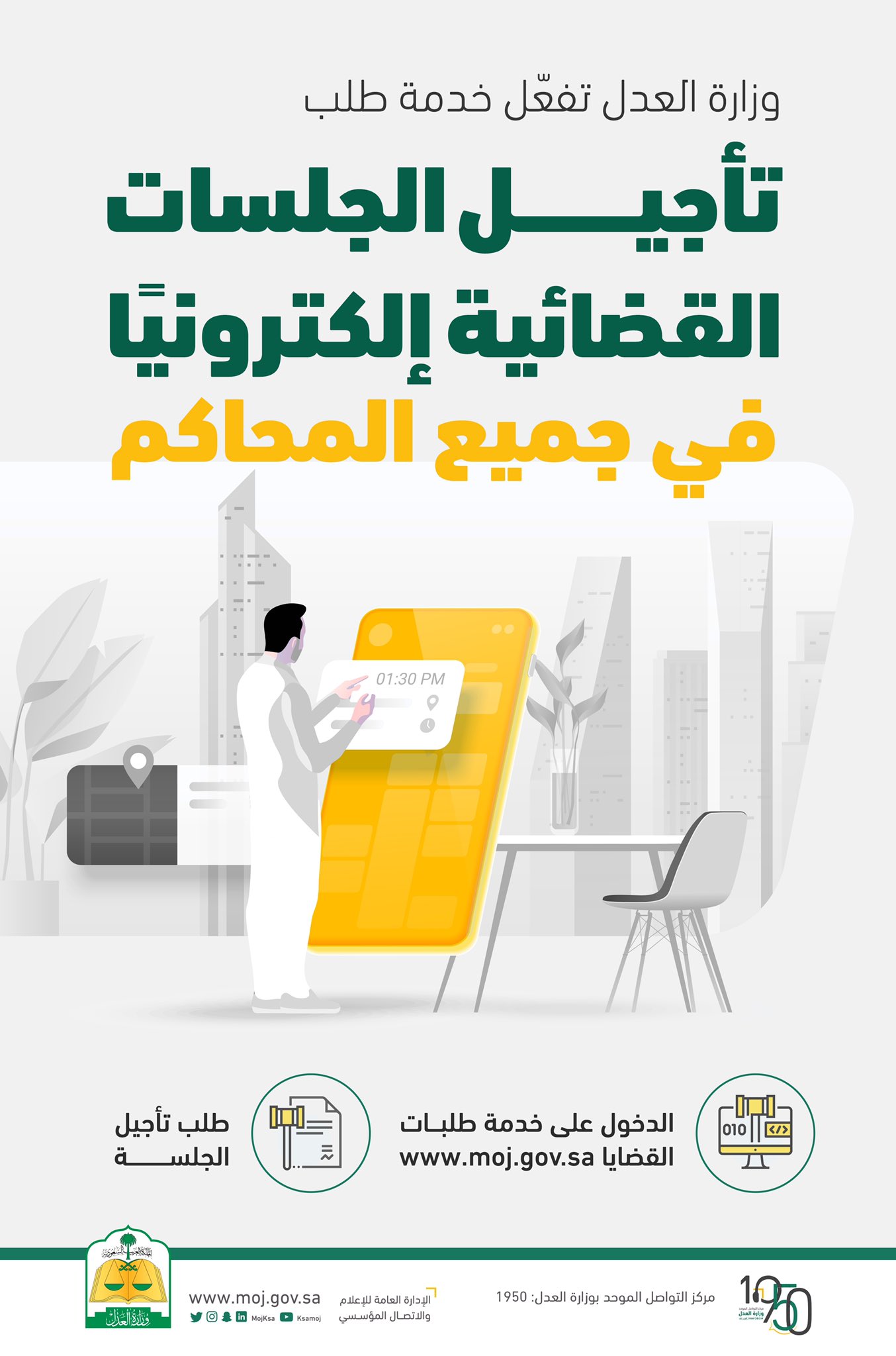 وزارة العدل En Twitter وزارة العدل تفع ل خدمة طلب تأجيل الجلسات القضائية إلكترونيا في جميع المحاكم استمرارا لجهودها في التيسير على المستفيدين من خلال البوابة الإلكترونية Https T Co Lqwczlqeby Https T Co Mvzrza3gcz