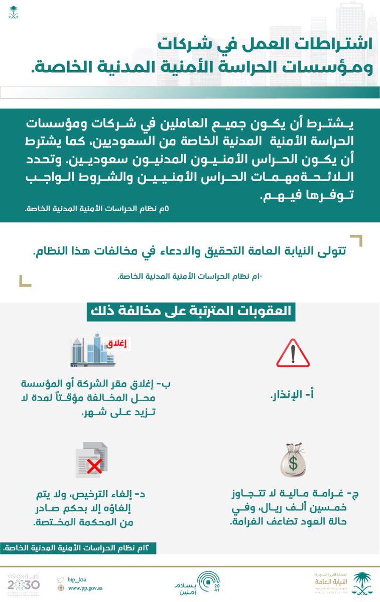 نظام العمل السعودي On Twitter الحراسة الأمنية المدنية الخاصة يشترط ان يكون جميع العاملين فيها سعوديين