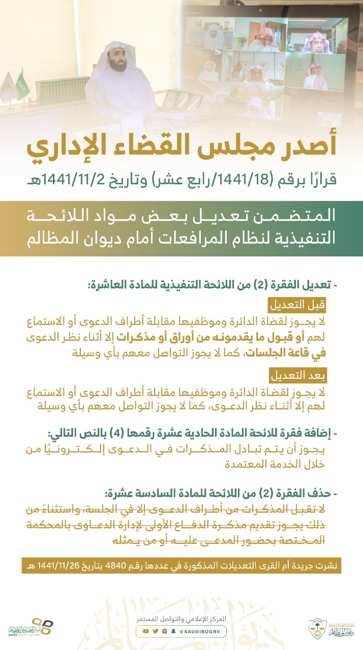 ديوان المظالم On Twitter مجلس القضاء الإداري يصدر قراره بتعديل بعض مواد اللائحة التنفيذية لنظام المرافعات أمام ديوان المظالم