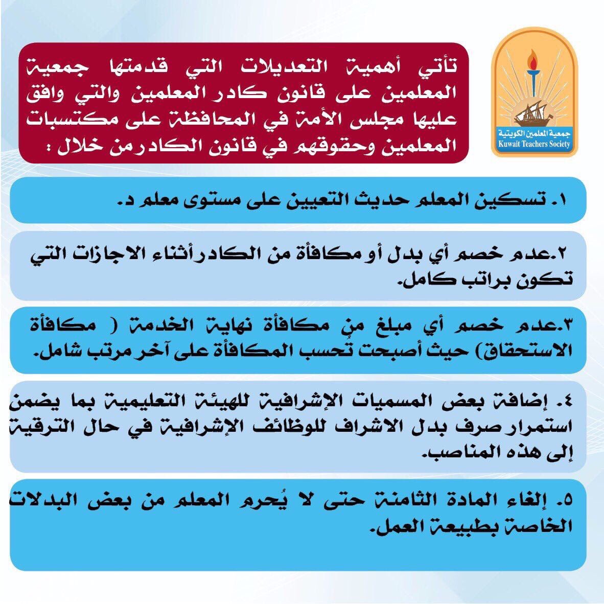 جريدة اجيال الالكترونية A Twitter اجيال التعديلات التي أقرت على قانون كادر المعلمين في مجلس الأمة اليوم وتقدمت بها جمعية المعلمين التربية التعليم Q8 Kw Https T Co Ecfjvryrai