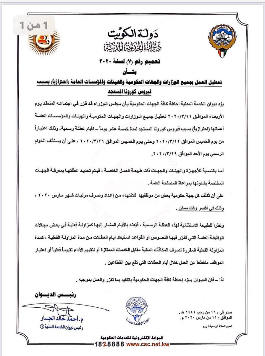 صحيفة الأنباء عاجل ديوان الخدمة المدنية تكليف كل جهة حكومية بعضا من موظفيها للانتهاء من إعداد وصرف مرتبات شهر مارس 2020 في أقصر وقت ممكن