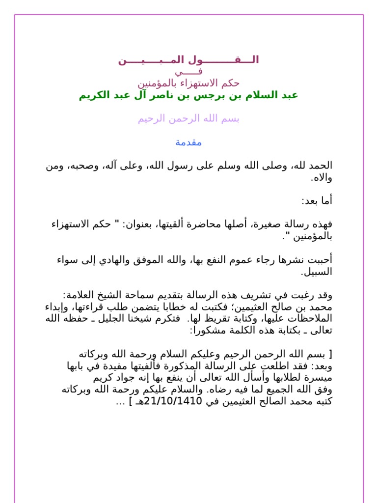 القول المبين في حكم الاستهزاء بالمؤمنين