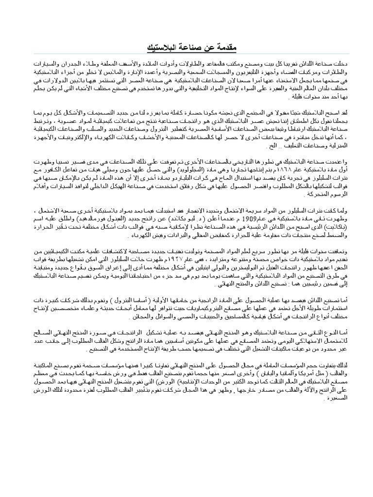 مقدمة عن صناعة البلاستك Pdf